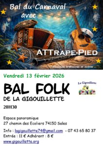 et le groupe invité ATTrape-Pied qui vous emmènera dans la danse avec de la musique bretonne mais pas que …